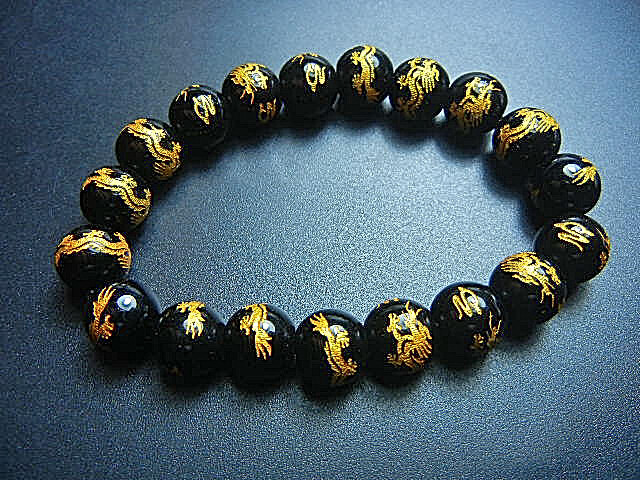- ★西蔵天珠数珠★JFV3736 黒オニキス 10mm金色「飛龍」彫り 超勧め