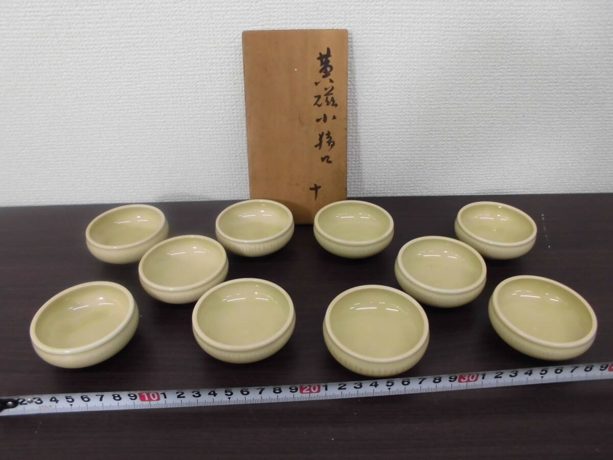 - [M17] 赤膚焼? 陶器 黄磁 小鉢 10客 木箱入り 未使用