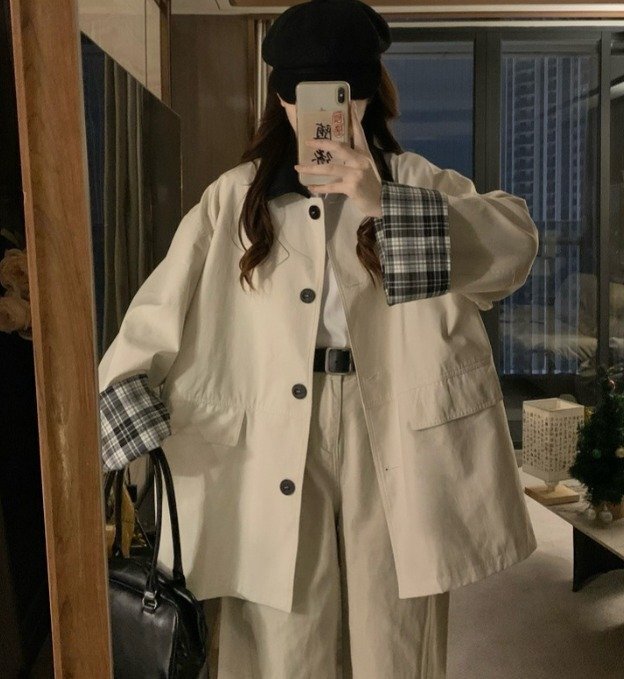 - コート 長袖 切り替え 体型カバー 着痩せ 2L ホワイト