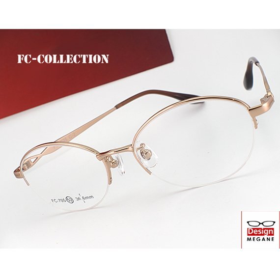 - 即決★眼鏡一式☆度入レンズ込★designメガネ★FC Collection オーバル Gold ハーフリム 度付き/度なし/伊達メガネ/ 【メガネ通販】