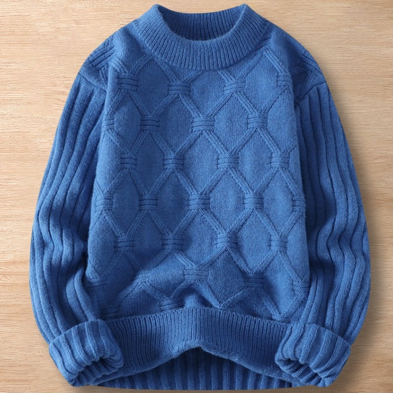 - Y105-2XL ブルー 新品DCKMANY ウール混 フィッシャーマンニット セーター 厚手 暖かい 冬 プルオーバー メンズ ケーブル編み 無地 トップス