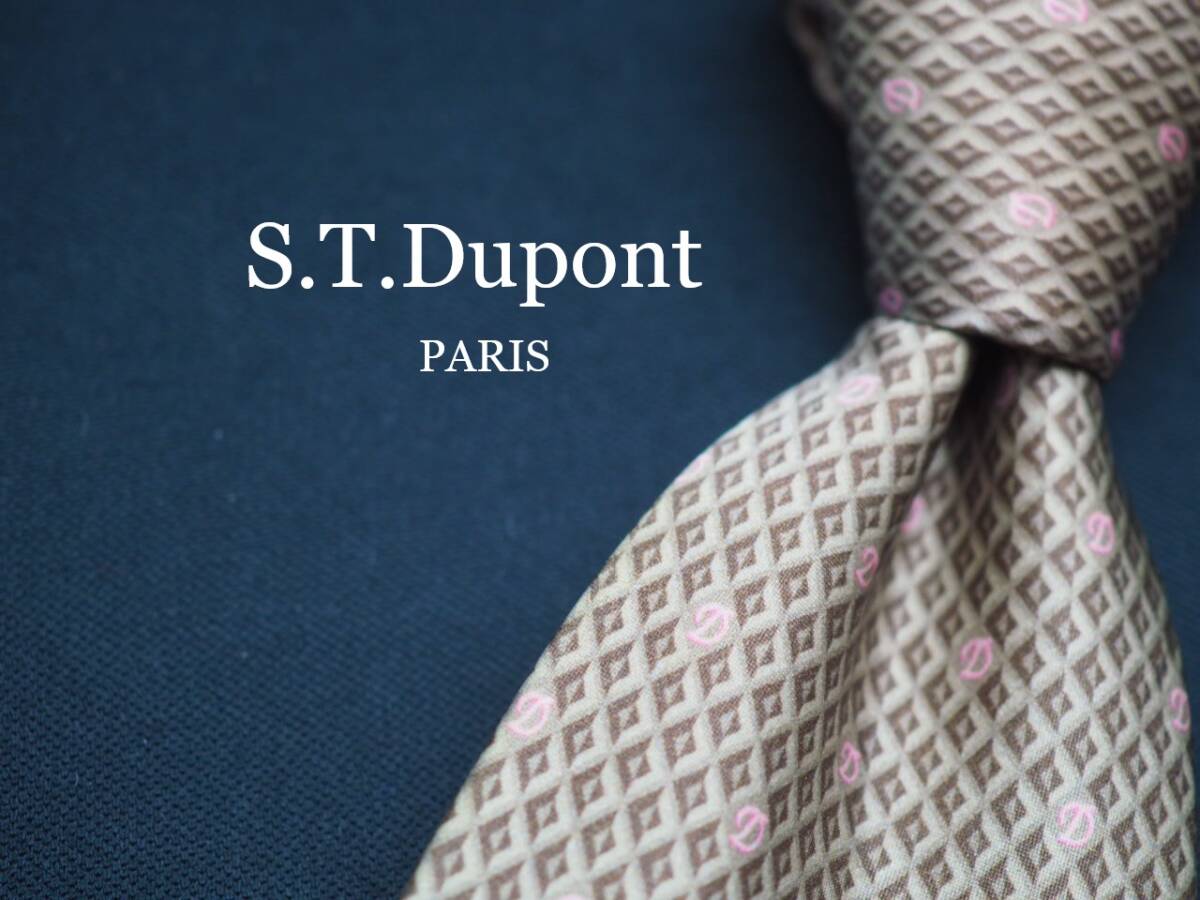 - 美品【S.T.Dupont デュポン】 G1103 ロゴ ベージュブラウン系 SILK ブランド ネクタイ 古着 良品 転売 仕入