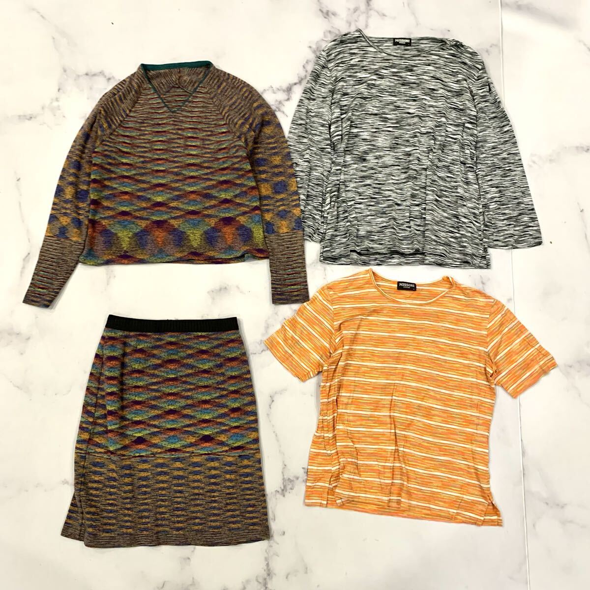 > ▼ 1円 ~ まとめ売り '豪華4点セット' MISSONI ミッソーニ イタリア製 長袖 半袖 スカート ニット Tシャツ レディース トップス ボトムス