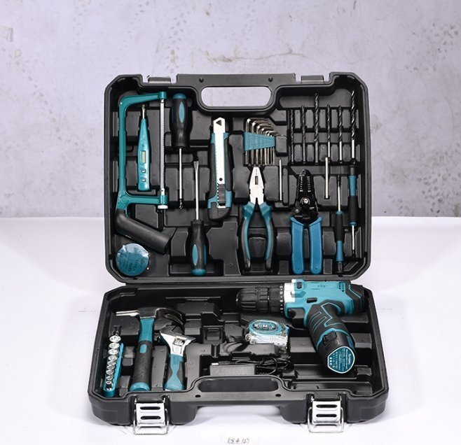 - リチウムイオン49個セットツールボックスドリルセット多機能手動フルセット家庭用金物大全組み合わせセット