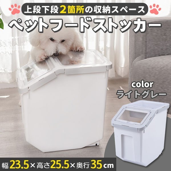 > フードストッカー フード入れ 密閉 ペット フード カップ付き キャスター付き グレー 保存容器 フードコンテナ 米びつ 米櫃 大容量