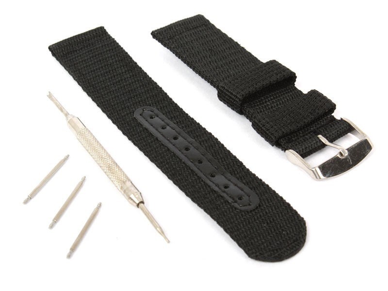 - ナイロン製 腕時計 バンド ベルト 22mm ストラップ ブラック