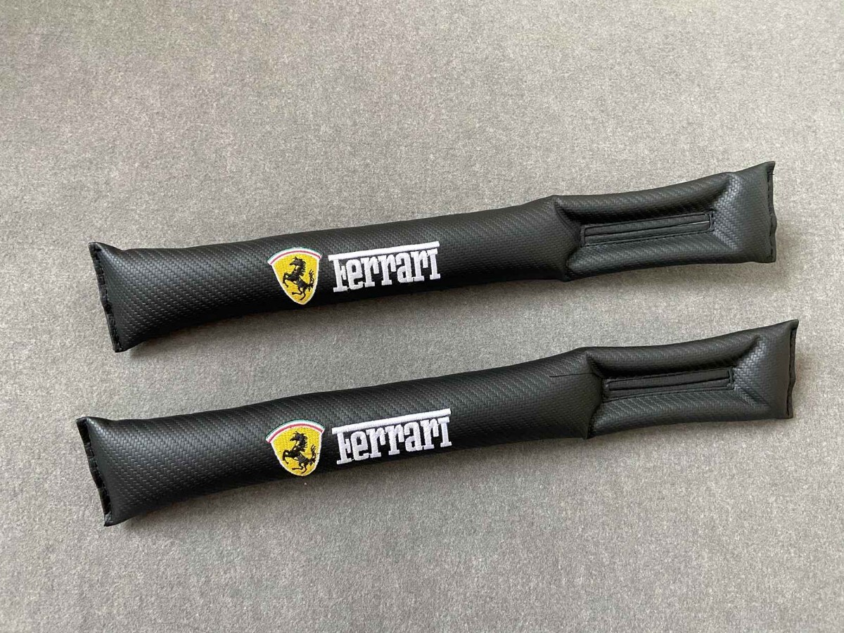 - フェラーリ Ferrari 車 シート隙間クッション シートサイド隙間埋め 運転席/助手席 2本セット 刺繍ロゴ カーボン調 シートコンソール 23番