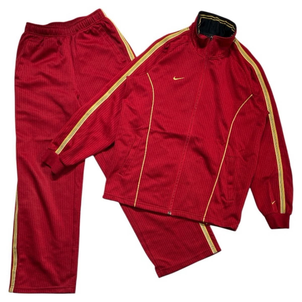 - ■ NIKE ナイキ ■ スウッシュ ロゴ 刺繍 ジャージ トラック ジャケット パンツ 上下 セットアップ レッド M