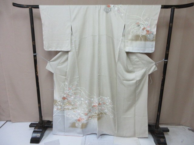 - 1円 良品 訪問着 正絹 着物 縮緬 式典 和装 和服 花籠 草花 枝花 萩 高級 袷 身丈154cm 裄63cm【夢職】★