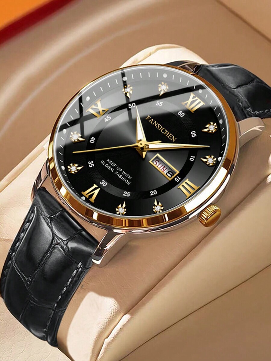 - 腕時計 メンズ クォーツ 新作 防水発光デュアルカレンダー クォーツ ウォッチ、大型ダイヤル、デイリーウェアに適し、メンズギフト
