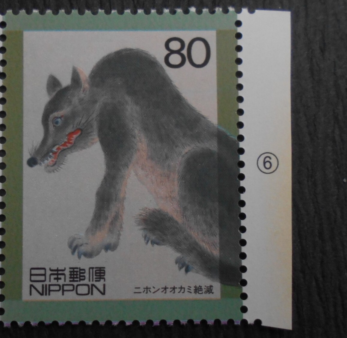 - 20世紀デザイン切手第2集⑥ ニホンオオカミ絶滅 未使用80円切手