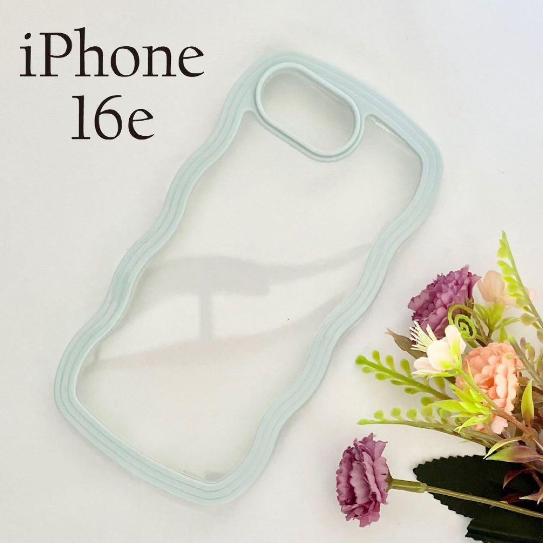 - iPhone16eケース 波型ウェーブ ソフトTPU:グリーン ☆おまけガラスフィルム付