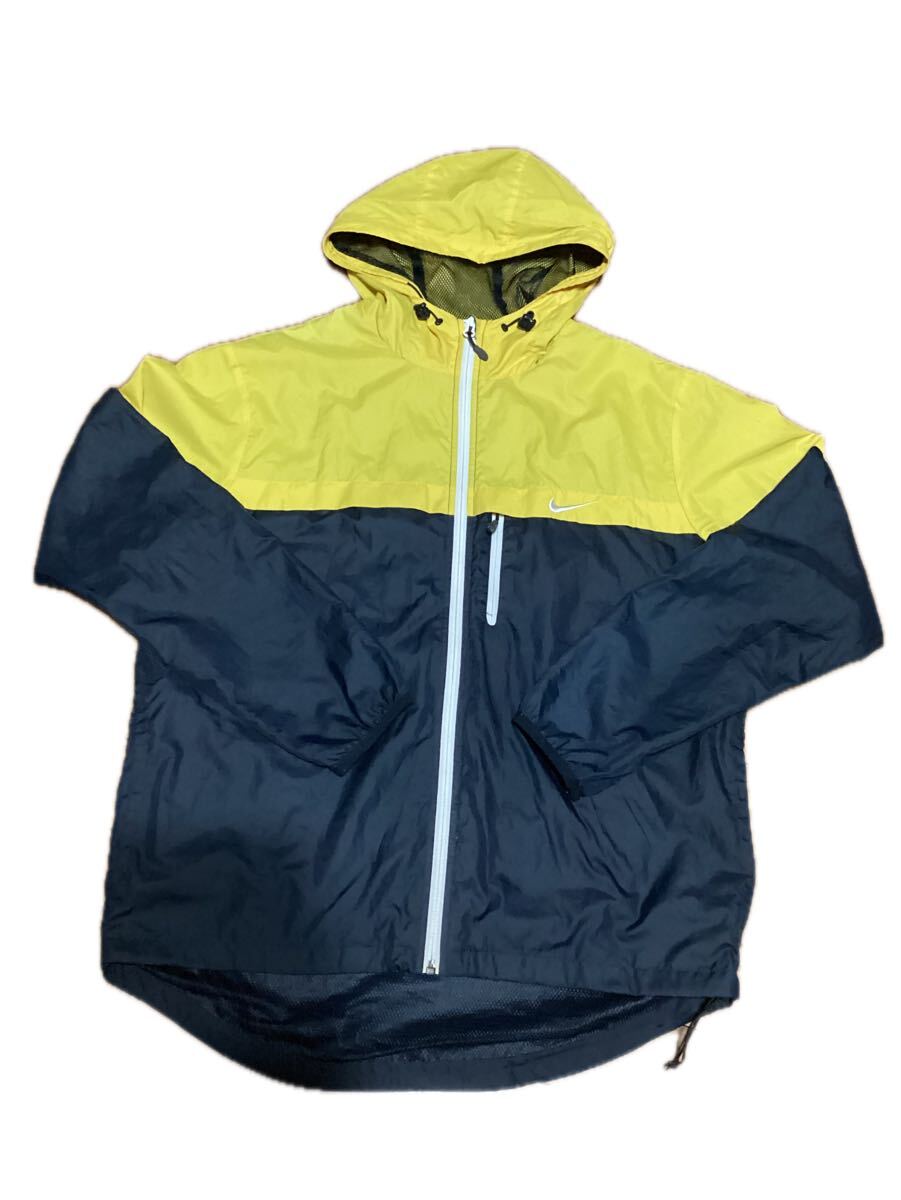 > NIKE ナイキ ウィンドブレーカー イエロー×ネイビー Mサイズ メンズ フード付き フードウインドブレーカーJKT ジャケット