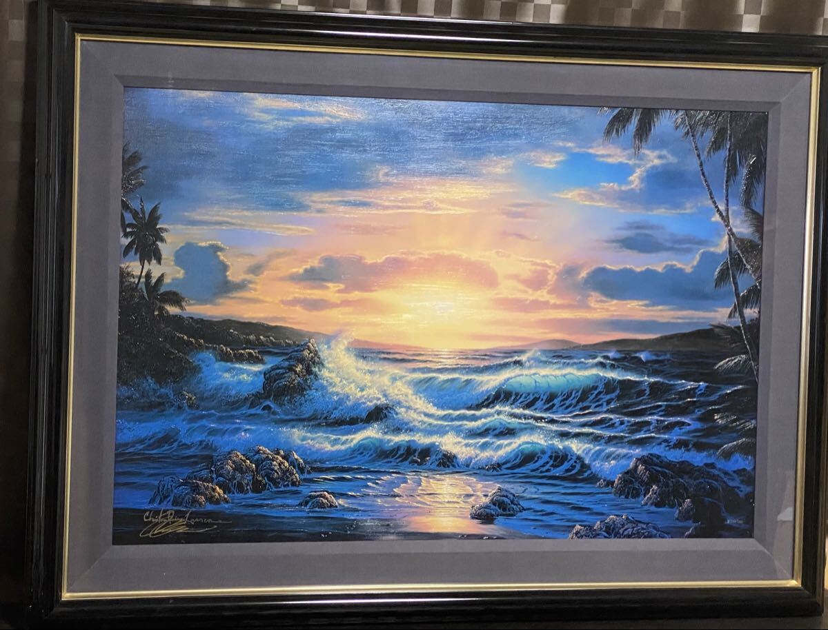 - 真作 特大サイズ クリスチャン・リース・ラッセン 【アイランドロマンス】 限定250部 30号大 ミクスドメディア アータグラフ 額縁