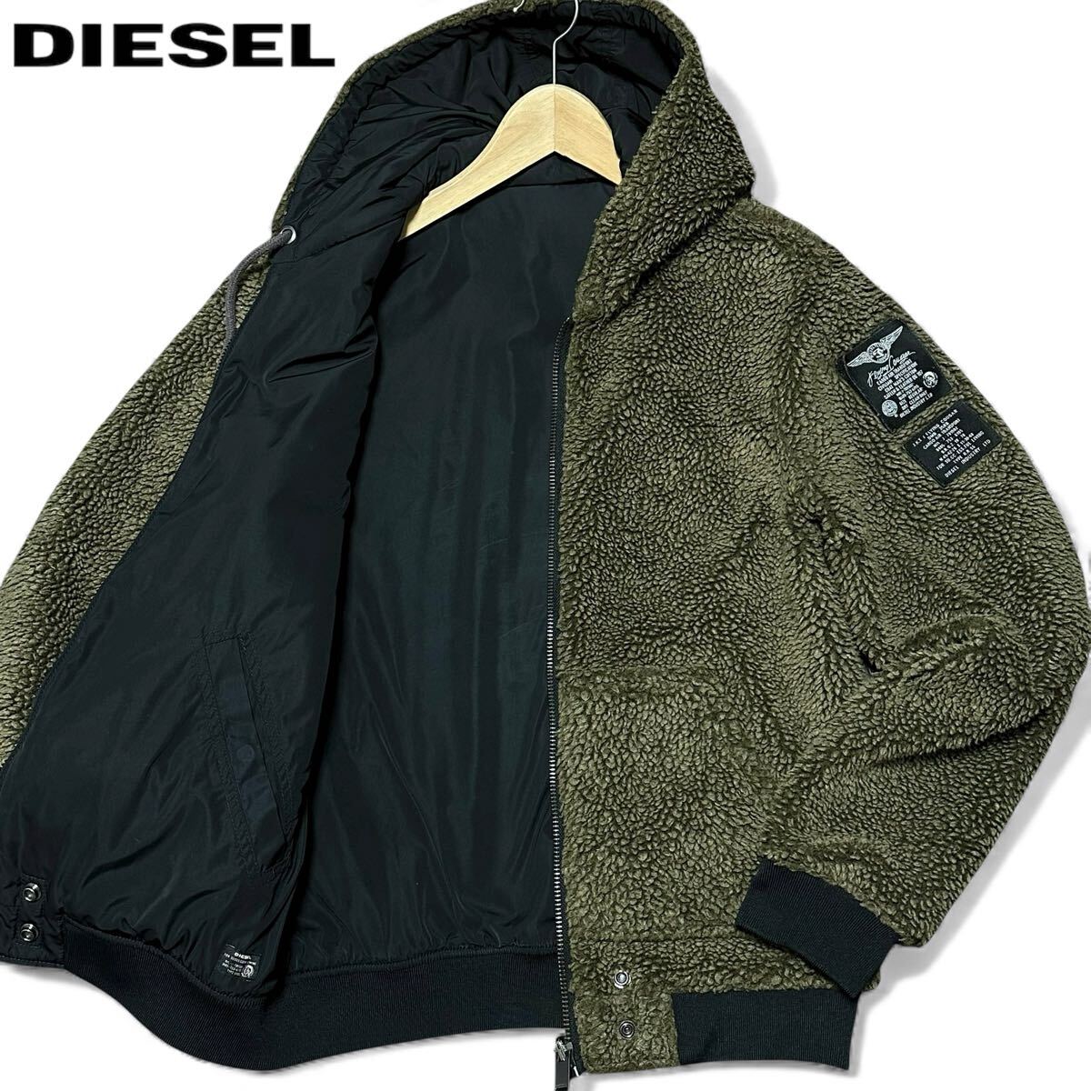 - 美品/L-XL相当●ディーゼル ボアパーカー フーデットジャケット ブルゾン 袖口ゴプレート 厚手 リバーシブル2WAY メンズ カーキ DIESEL
