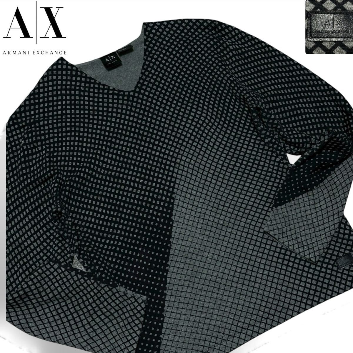 > 極美品/Lサイズ●アルマーニ エクスチェンジ『洗練された大人の羽織り!』ニット セーター 総柄 秋冬 グレー ネイビー ARMANI EXCHANGE
