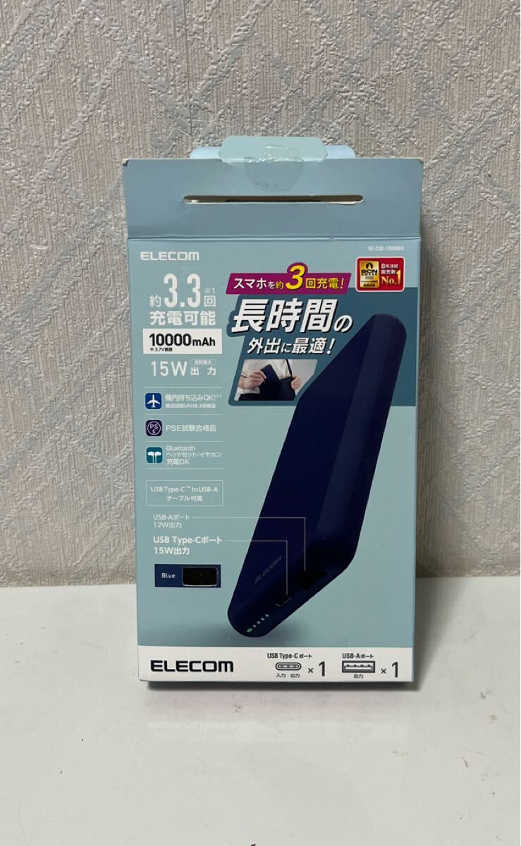 > 711i0812 エレコム モバイルバッテリー 大容量 10000mAh 15W 2台同時充電 出力2ポート (Type-C/USB-A) 入力(Type-C) ブルー