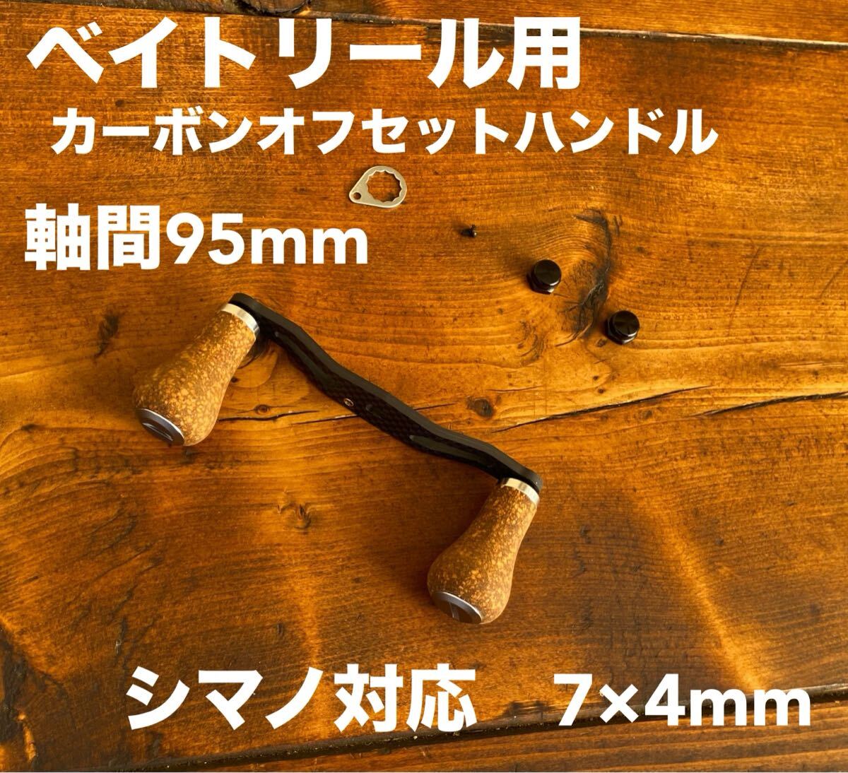 - カーボンオフセットハンドル コルクノブ シルバー 軸間95mm シマノ対応
