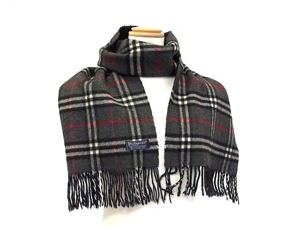 - 1円 ■極美品■ Burberrys バーバリーズ ノバチェック カシミヤ100% フリンジ マフラー 防寒具 レディース メンズ グレー系 FU4284