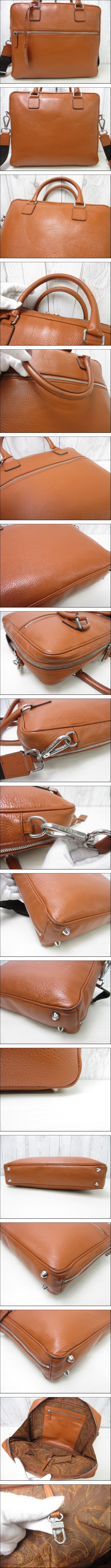 > 極美品 ETRO エトロ ビジネスバッグ トートバッグ ショルダーバッグ バッグ レザー×ペイズリー柄素材 茶系 A4可 2WAY メンズ 91789Y