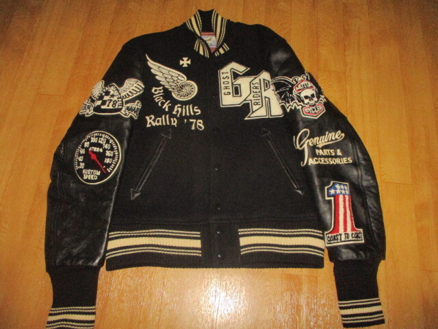> 東洋エンタープライズ Whitesville ホワイトツビル スカル 黒 フルデコ・スタジャン・ジャケット サイズ38 美中古