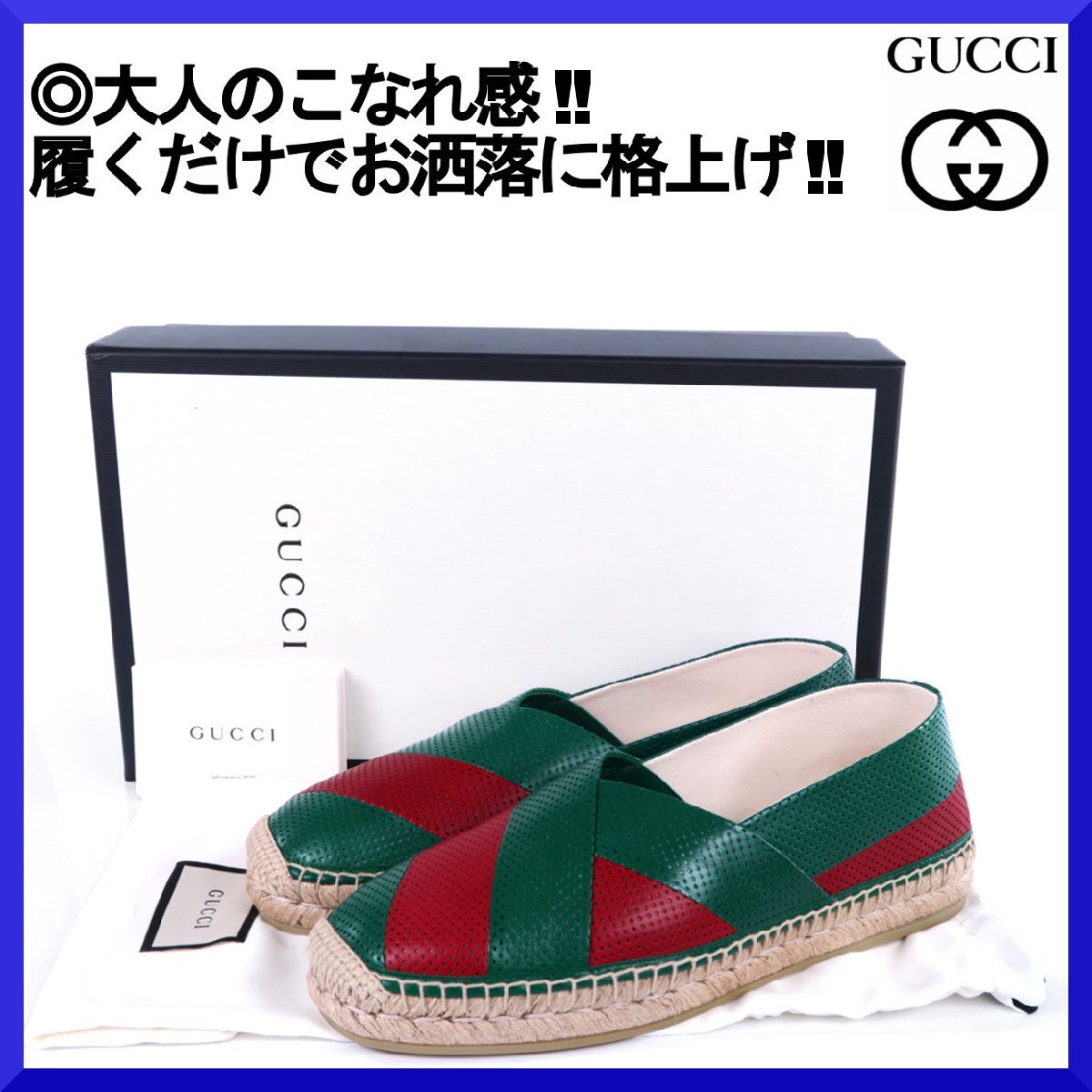 - 価格8,5万新品本物グッチGUCCI【履くだけで格上げ◎大人のこなれ感 】本革レザーエスパドリーユ/シューズ/スリッポン靴/メンズ/春夏/7