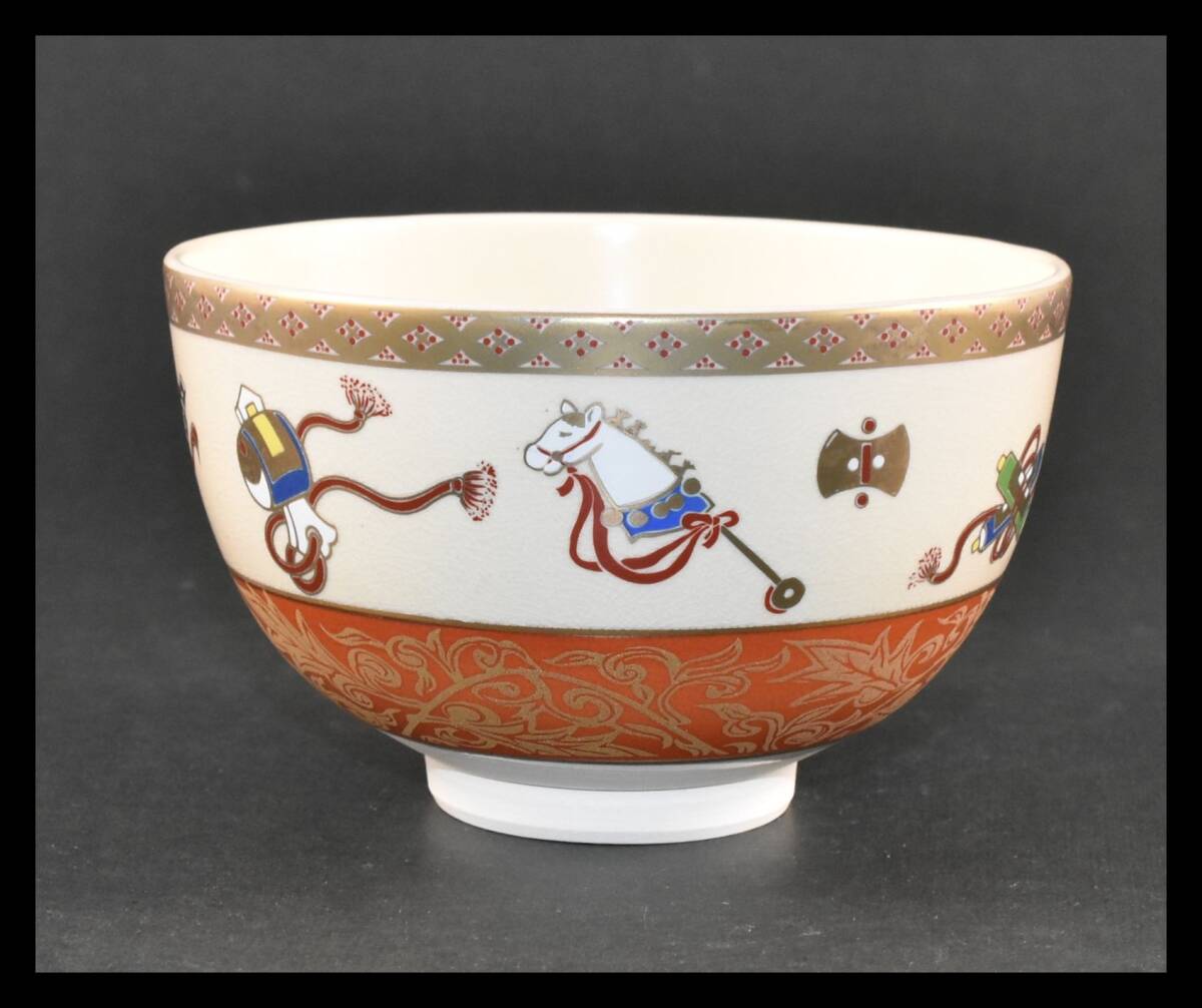 - ▲楠廸庵▲朱金襴宝尽馬茶碗 藤山作 茶道具