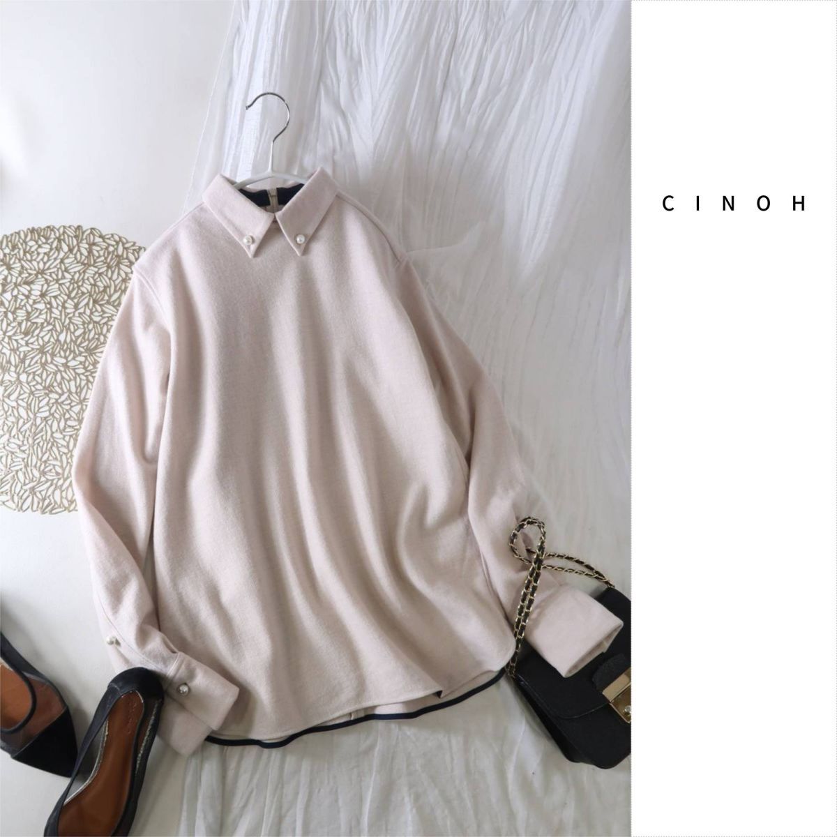 - チノ CINOH☆パールボタン ウール 衿プルオーバー 38サイズ 日本製☆A-O 6382