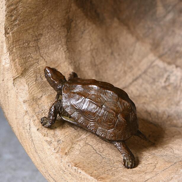 - 高品質伝統工芸品 茶道具 金亀 純銅製 置物 民芸品 細密彫刻 車内置物 総長5.2cm