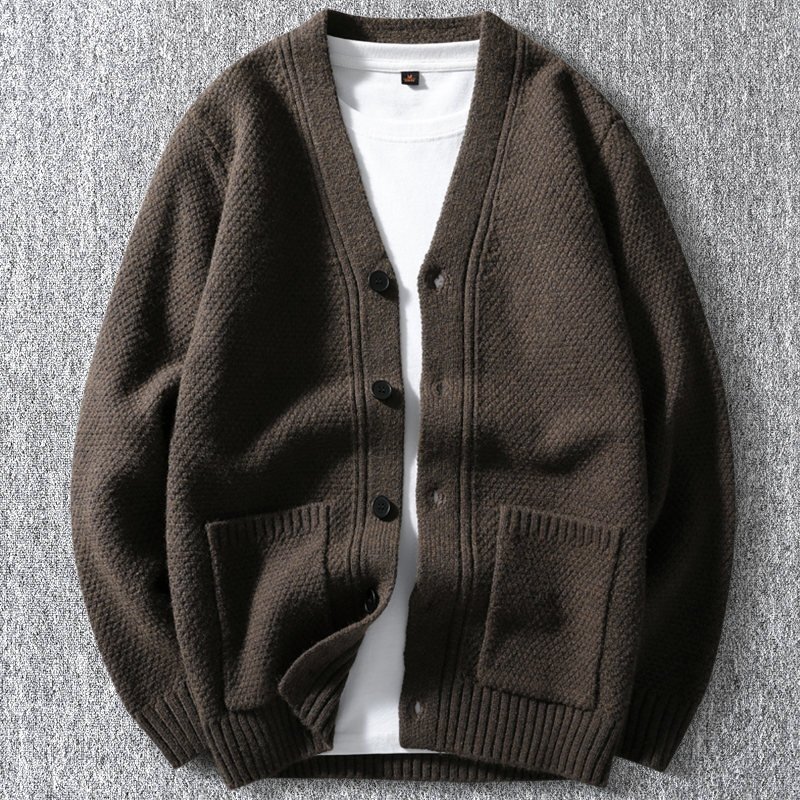 - 新品 ウール混 ニット カーディガン 秋冬 厚手 無地 Vネック セーター メンズ 秋冬 暖かさ ニットジャケット アウター ブラウン T6180-XL