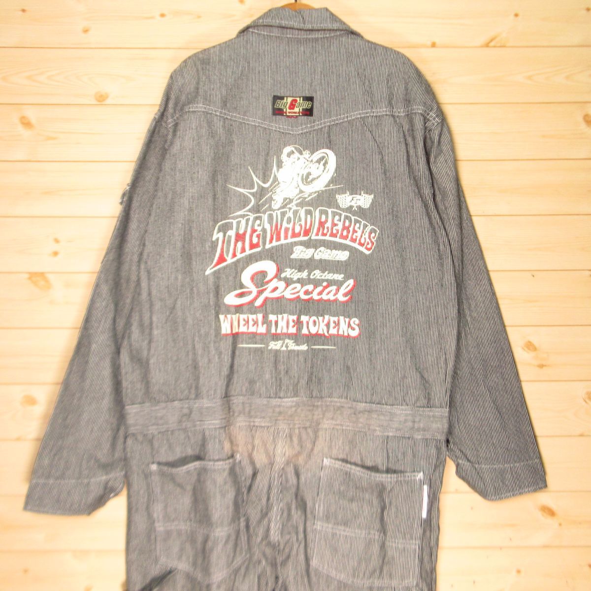 > ◎Big Game ビッグゲーム GE-105 つなぎ オールインワン ヒッコリー バイク アメ車 メカニック ワンウォッシュ加工 メンズ 黒 3L◆PA4511