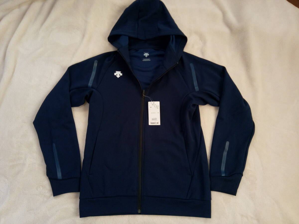 - タグ付き新品 DESCENTE デサント ジャージジャケットフルジップパーカーフーデッド ネイビー ストレッチ メンズLサイズ DTM-1013