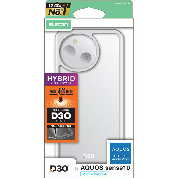 > AQUOS sense10/9用超耐衝撃性ハイブリッドケース ハーフクリアタイプ 次世代の衝撃保護テクノロジーD3Oを採用: PM-S253D3OTCR