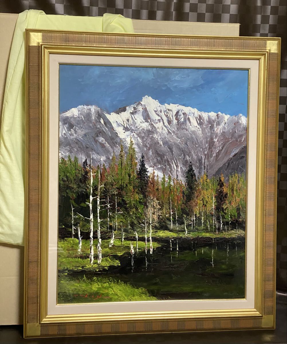 - 真作 油彩画 油絵 高橋哲夫 【上高地】 F15号 傑作 風景画 風景画 額縁 額装 インテリア
