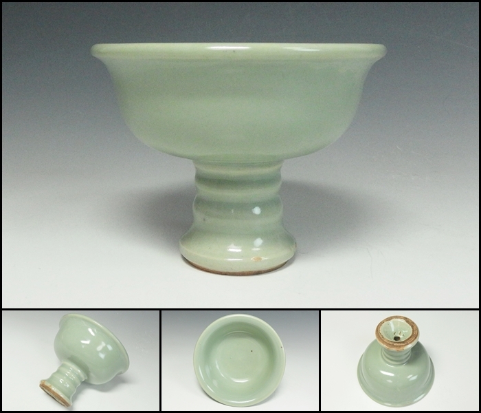 - 【251110-7】明時代 龍泉窯青磁馬上杯 唐物古玩 中国古陶磁時代物