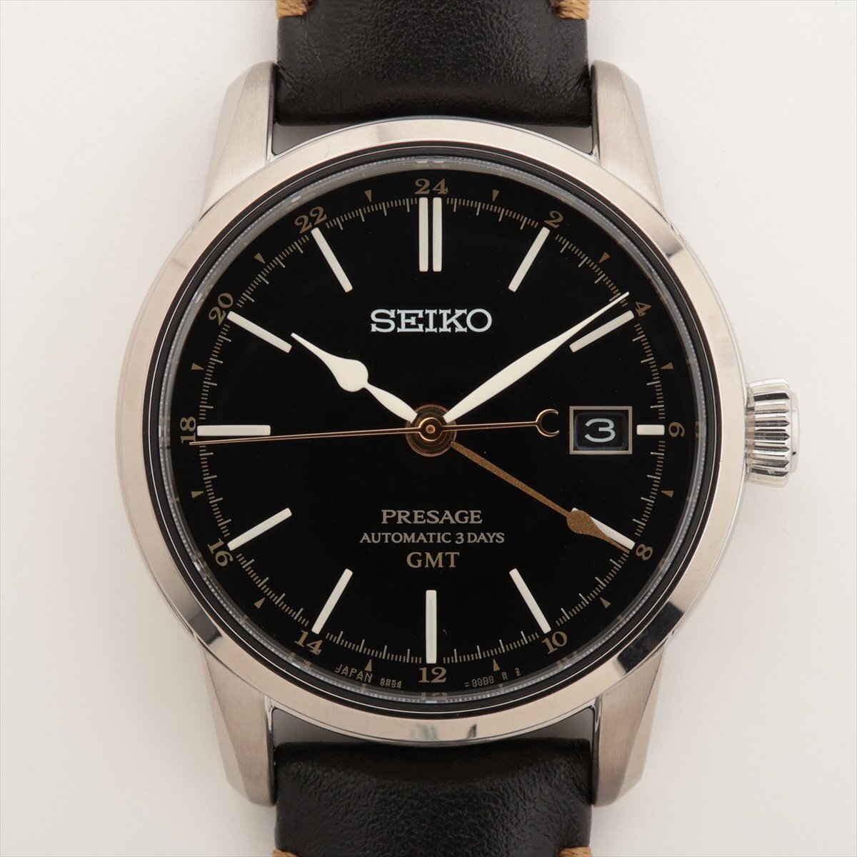 - ■ 中古 美品 参定24.3万■ セイコー SEIKO ■ プレザージュ SARH001 漆ダイヤル GMT ■ ブラック 黒 ゴールド 自動巻き メンズ 漆