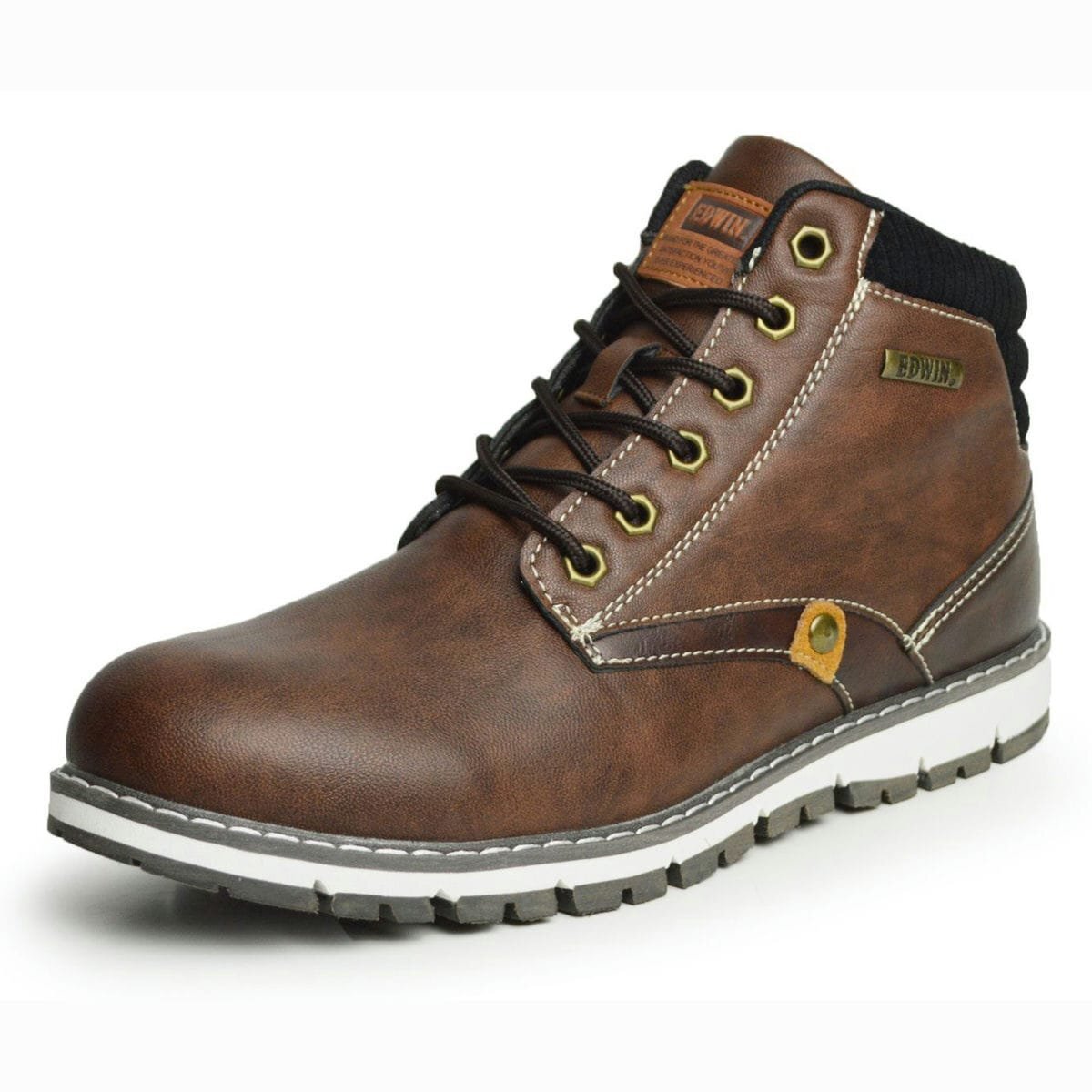 - 新品■25cm EDWIN 防水 カジュアルシューズ ウォーキングシューズ ハイカット メンズ スニーカー 防滑 雨 レイン 紐靴 エドウィン ロゴ