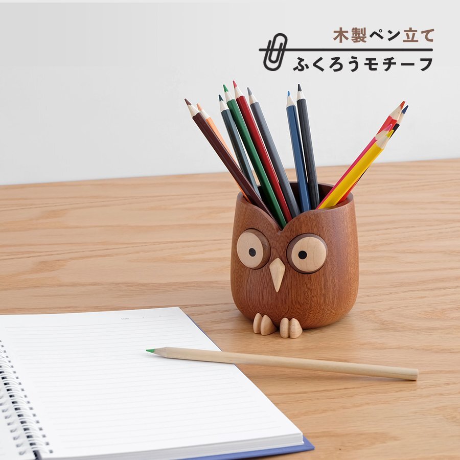 - Pen Holder Owl 木製ペン立て オウル 雑貨 ペンホルダー 小物入れ 収納 インテリア ディスプレイ オブジェ 置物 フクロウ ステーショナリー
