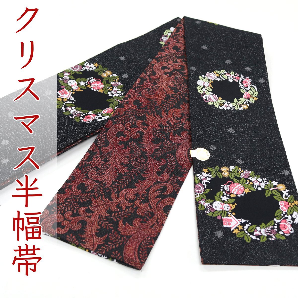 > 和遊館 oha070 仕立て上がり 西陣 佐々木染織 お洒落 小袋帯 半幅帯 冬 雪だるま リース クリスマス リバーシブル
