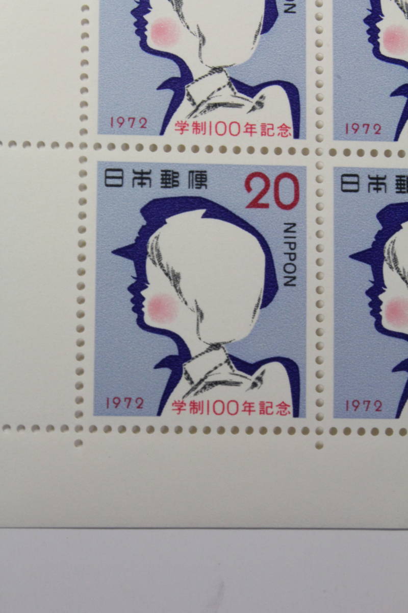 - 〇未使用20円切手シート1枚 1972年 学制100年記念 児童の横顔