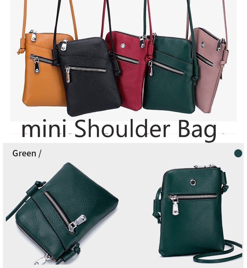 - ミニショルダーバッグ 牛皮 グリーン レザー シンプル 小物 スマホ カード 鍵 たばこ などn528