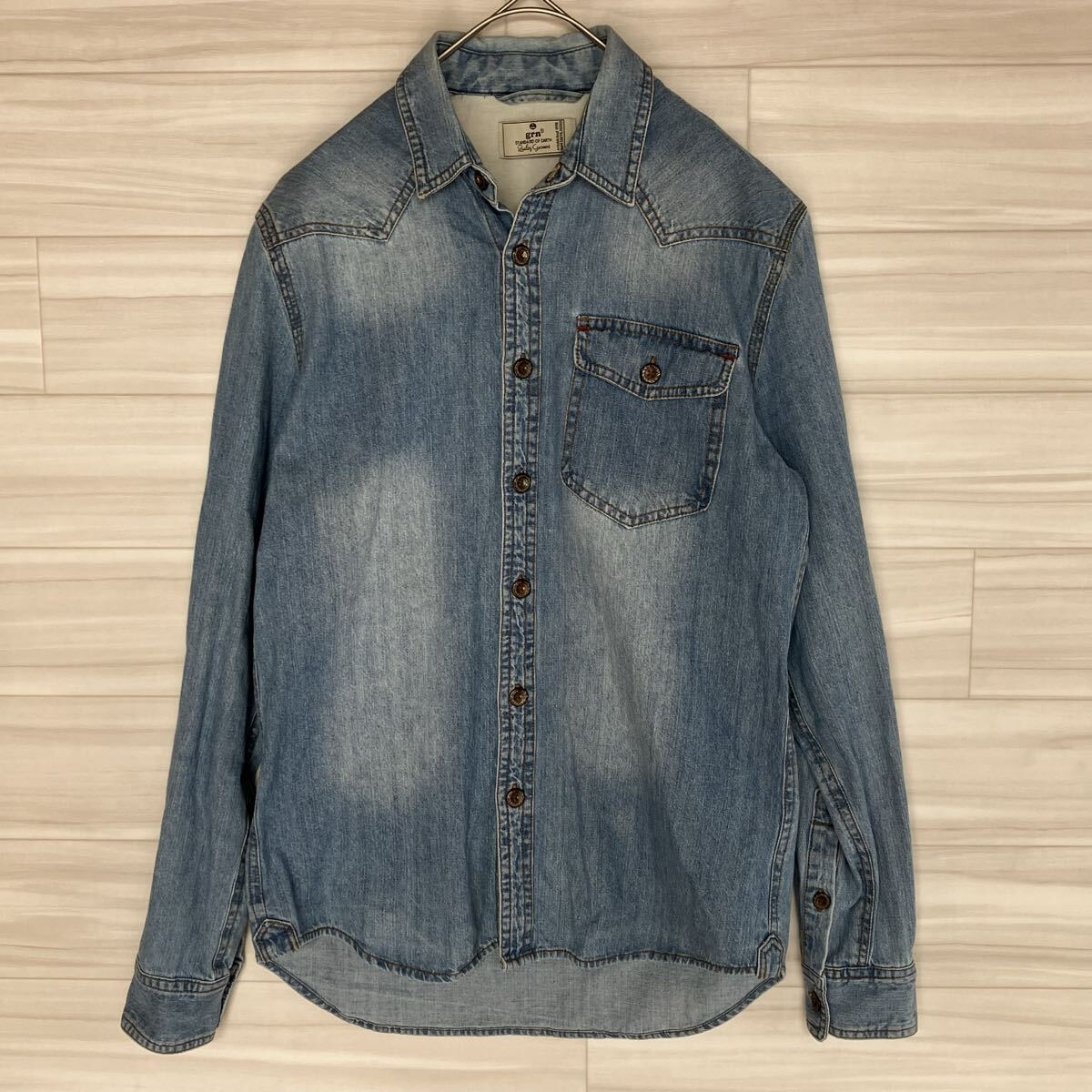 - grn ジーアールエヌ デニムシャツ 長袖 S ウェスタン 古着