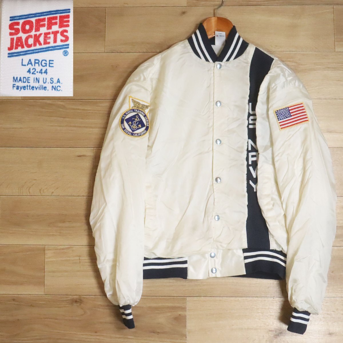 > Y4R/R6.10-6 90s USA製 SOFFE JACKETS サテンスタジャン アワードジャケット ワッペン ブルゾン L メンズ アメリカ古着
