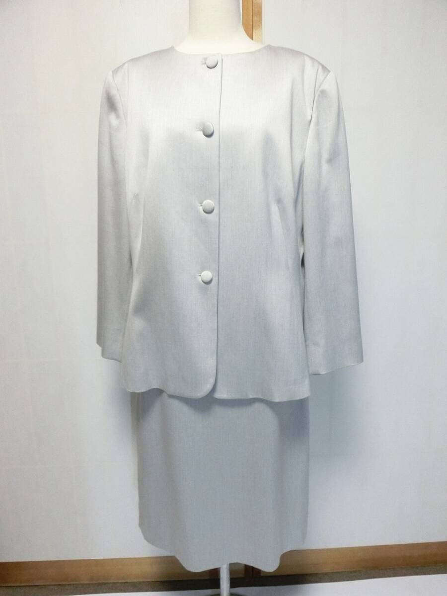 - ★HERNO ヘルノ 少しだけ光沢のあるライトグレーでノーカラージャケット+スカートのセットアップ スーツ 48★イタリア製