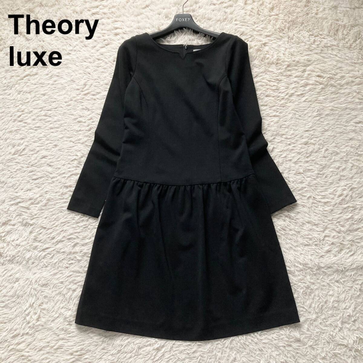 > 美品 Theory luxe セオリーリュクス 日本製 ブラック 黒 長袖ワンピース 38 S.M相当 レーヨン混 ストレッチ オフィス 学校行事 フォーマル