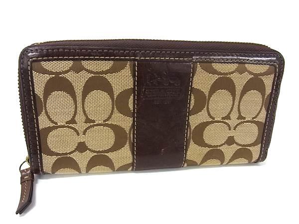> ■美品■ COACH コーチ キャンバス×レザー ラウンドファスナー 長財布 ウォレット 小銭入れ 札入れ カード入れ ブラウン系 DI9377