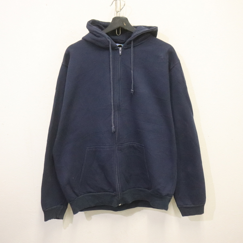 > y554 90sビンテージ BIGCREEK スウェットパーカー フルジップ■1990年代製 表記Lサイズ ネイビー フーディー 無地 アメカジ 古着 激安