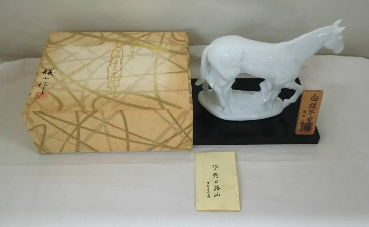 > 【菊水-791】野田勝山作 有田焼 白磁 干支置物/馬/午年/陶器/割れ物/中古美品(IT)