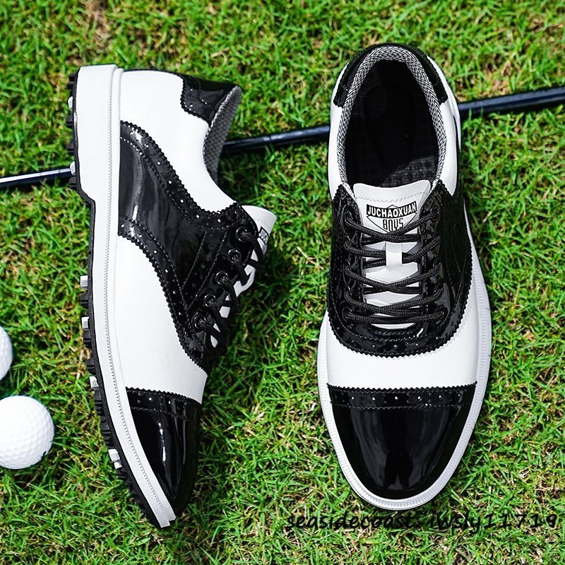 - 新品◆ゴルフシューズ スポーツシューズ メンズ 高級品 ソフトスパイク イギリス風 フィット感 防水 防滑 スニーカー 紳士靴 白*黒 24.5cm
