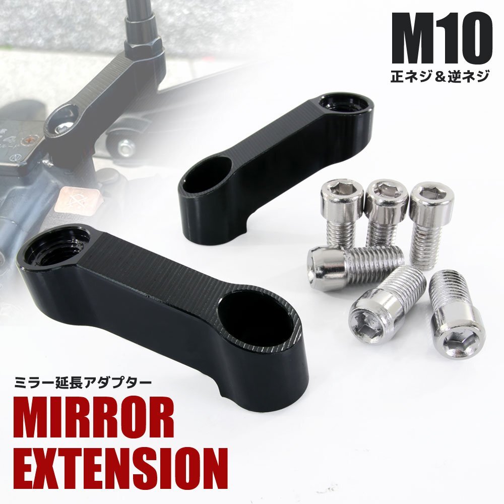 ミラー 延長 アダプター 正ネジ 10mm M10 逆ネジ エクステンション オフセット ホルダー ミラーライザー カスタム パーツ バイク ブラック